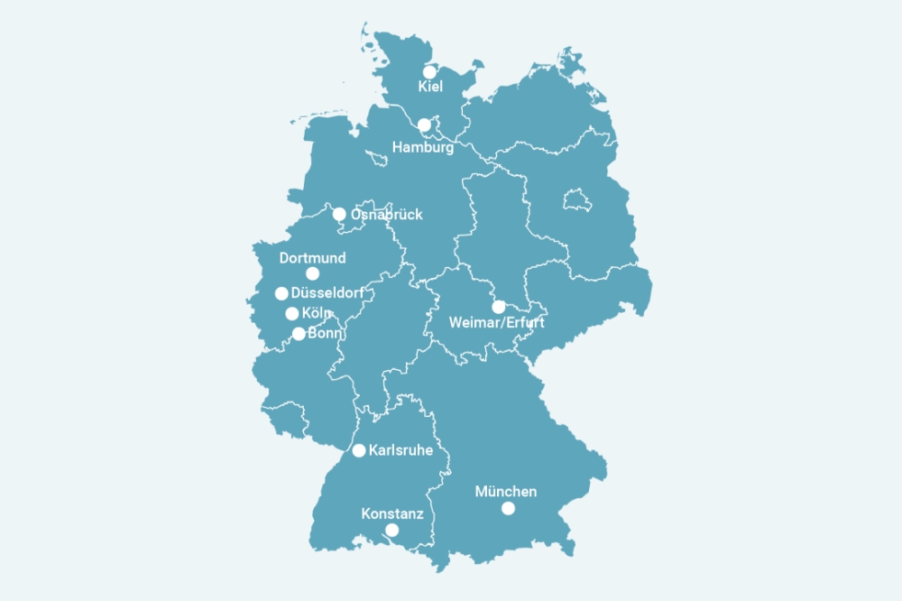 Folgende Karte zeigt die Kooperationsorte im Rahmen von VISIT.